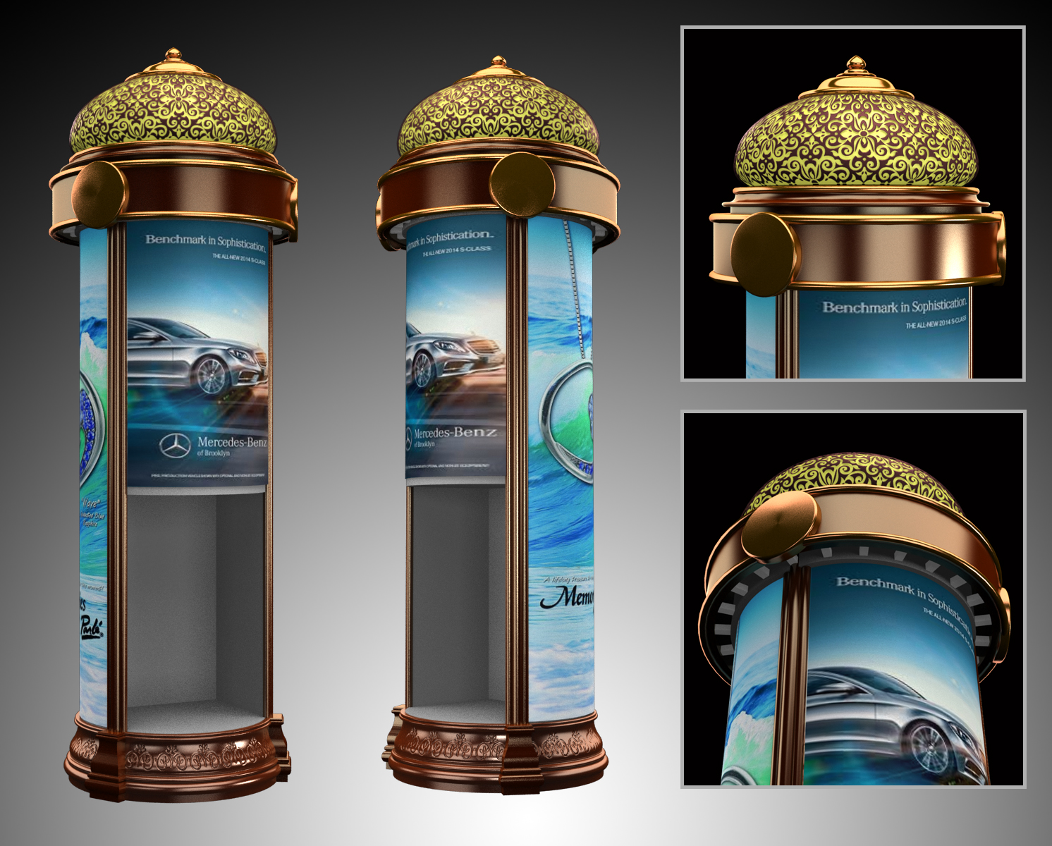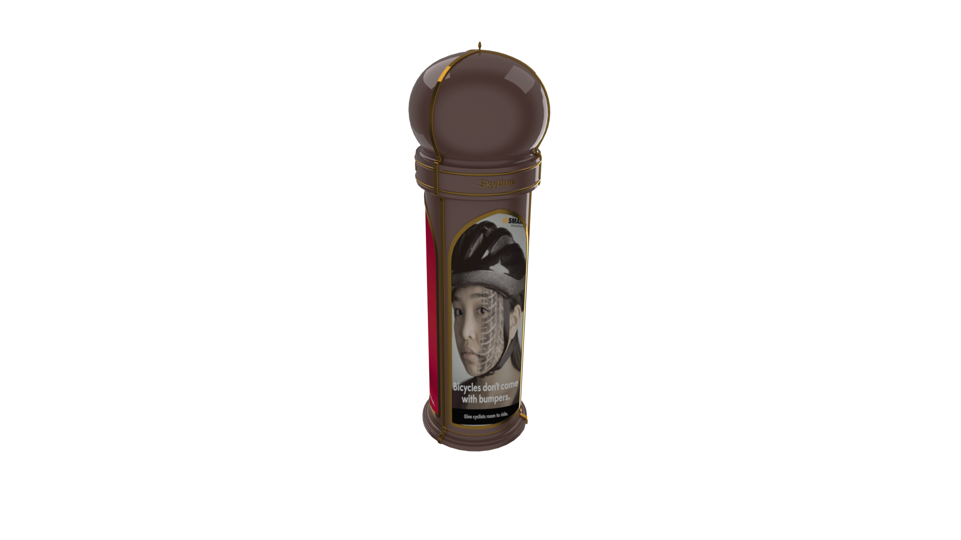 We prefer Advertising Pylon should be Cylindrical Shape or Cubical Shape (curved) or Triangle Shape (Curved) One Side must for Recycle Bin other 2 or 3 side should be advertising space.
