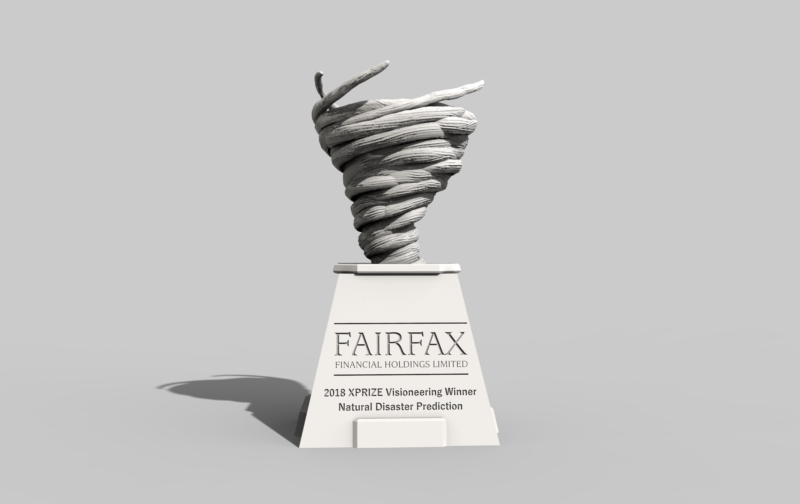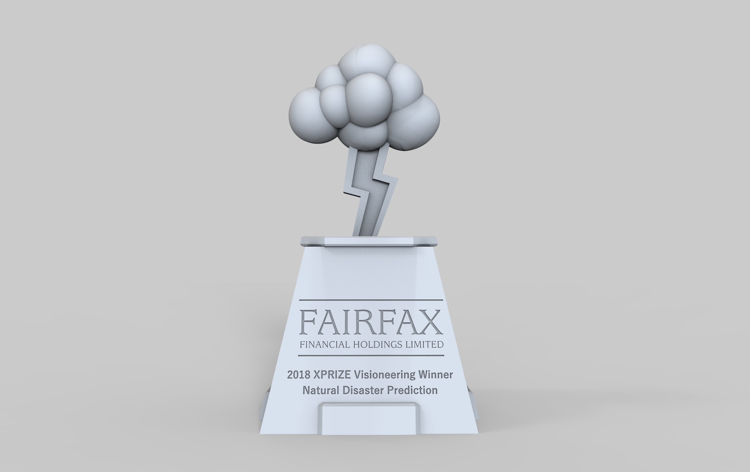 This will be the trophy for the Natural Disaster Prediction prize, sponsored by Fairfax Financial, which aims to save lives and prevent economic losses through better mechanisms to predict and prevent the impact of natural disasters, such as earthquakes and hurricanes. Please check outwww.xprize.org/visioneering/natural-disaster-predictionfor more information.