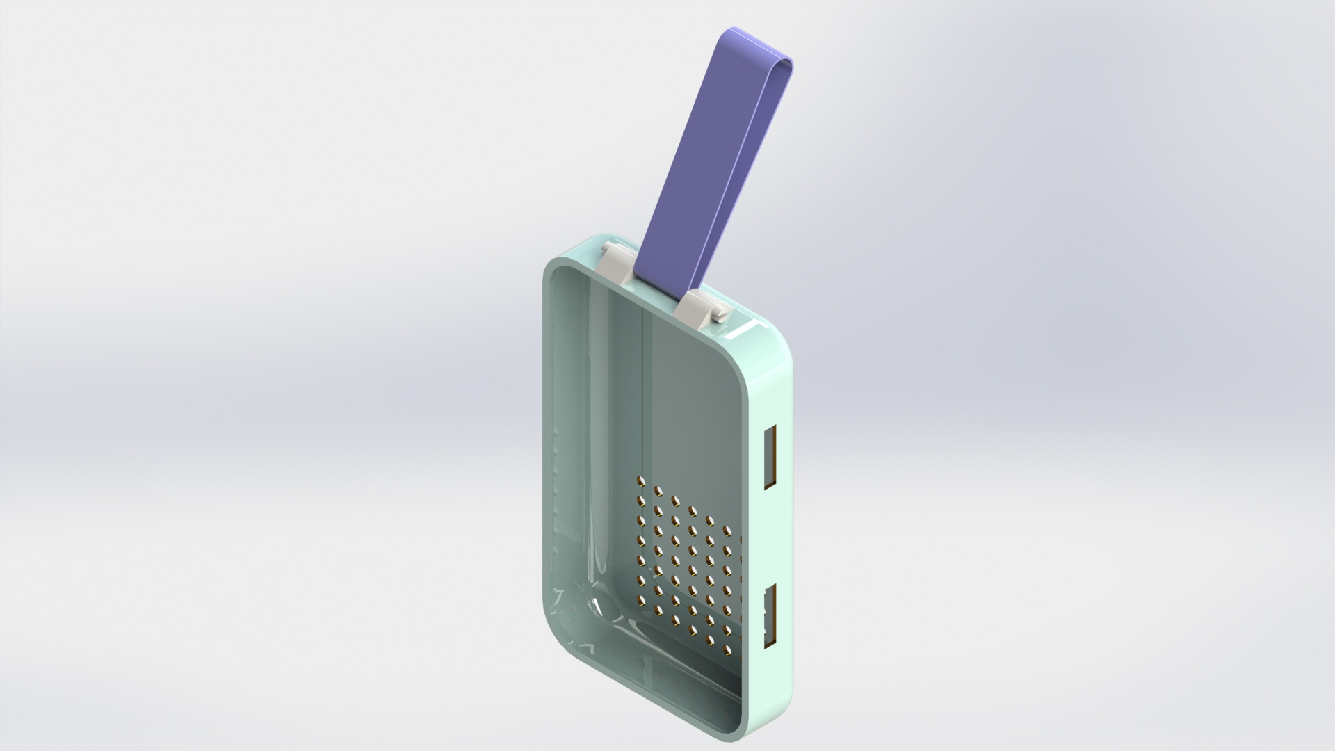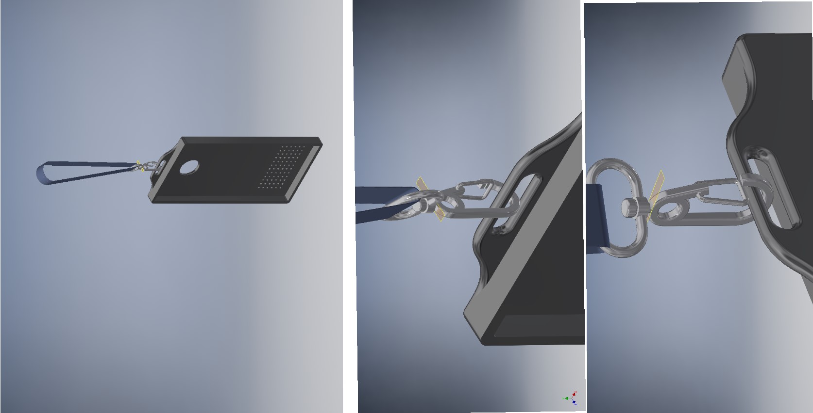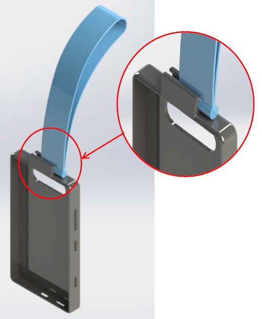 The strap is an integral part of the whole concept and possibly challenging. The strap must attach to the casing with a simple locking mechanism.