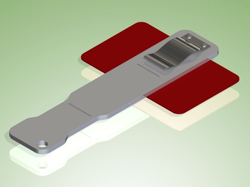 As seen in the sketchup images, this rectangular clip functions as a wallet and clips onto the opening of a front pants pocket (an example is shown in photo's). I need YOUR help in finding an ergonomic & functional solution to securing a car key FOB to the clip as well as sourcing pro CAD files that can be sent to a CNC machining facility.