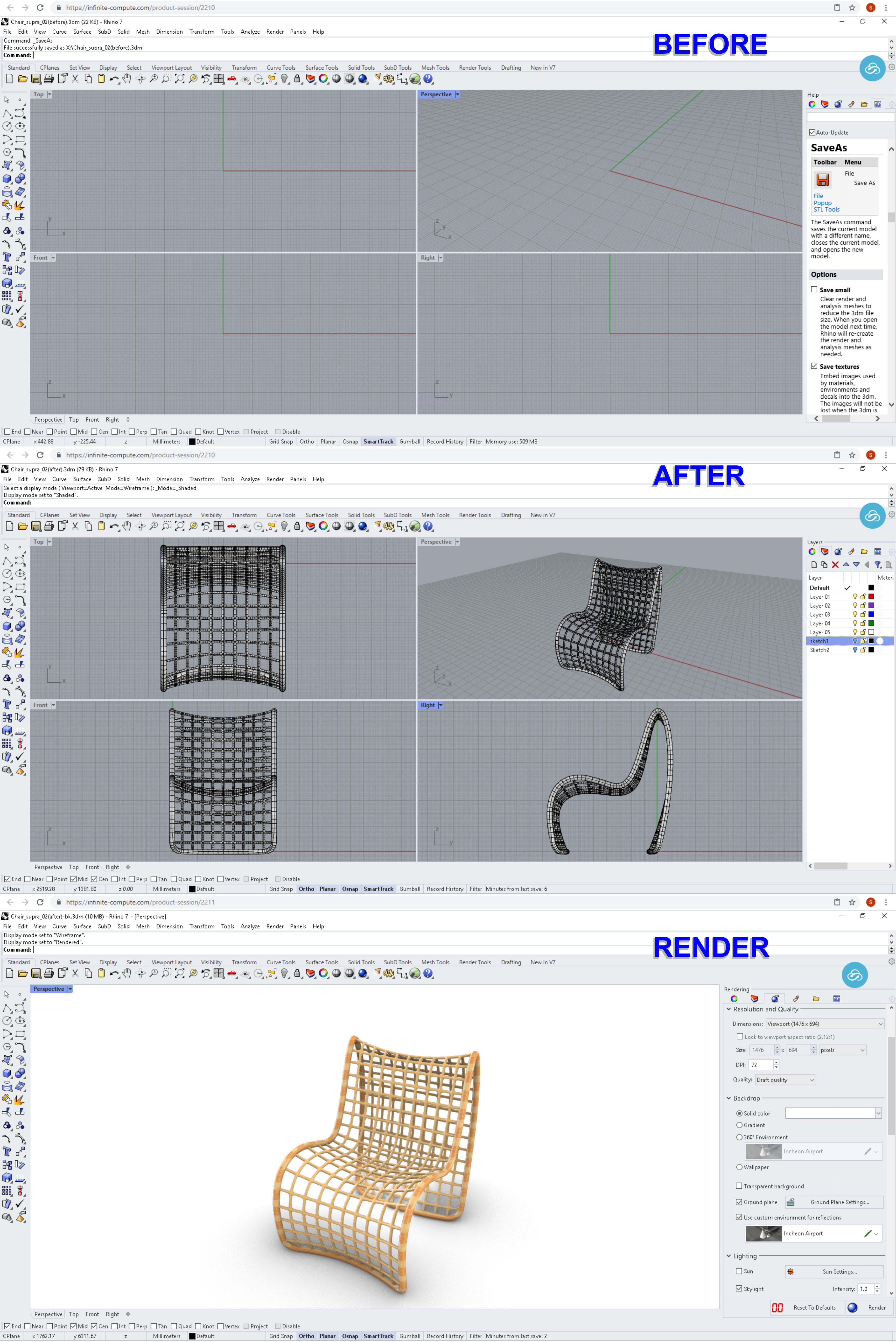 1. Your design file must be enhanced on Rhino3D 7 on the Infinite-Compute platform...and not on your own computer.
