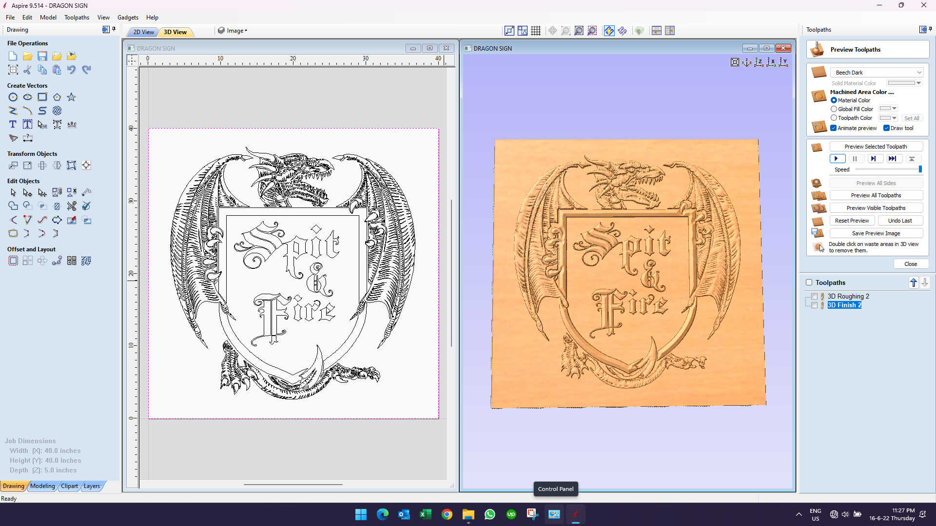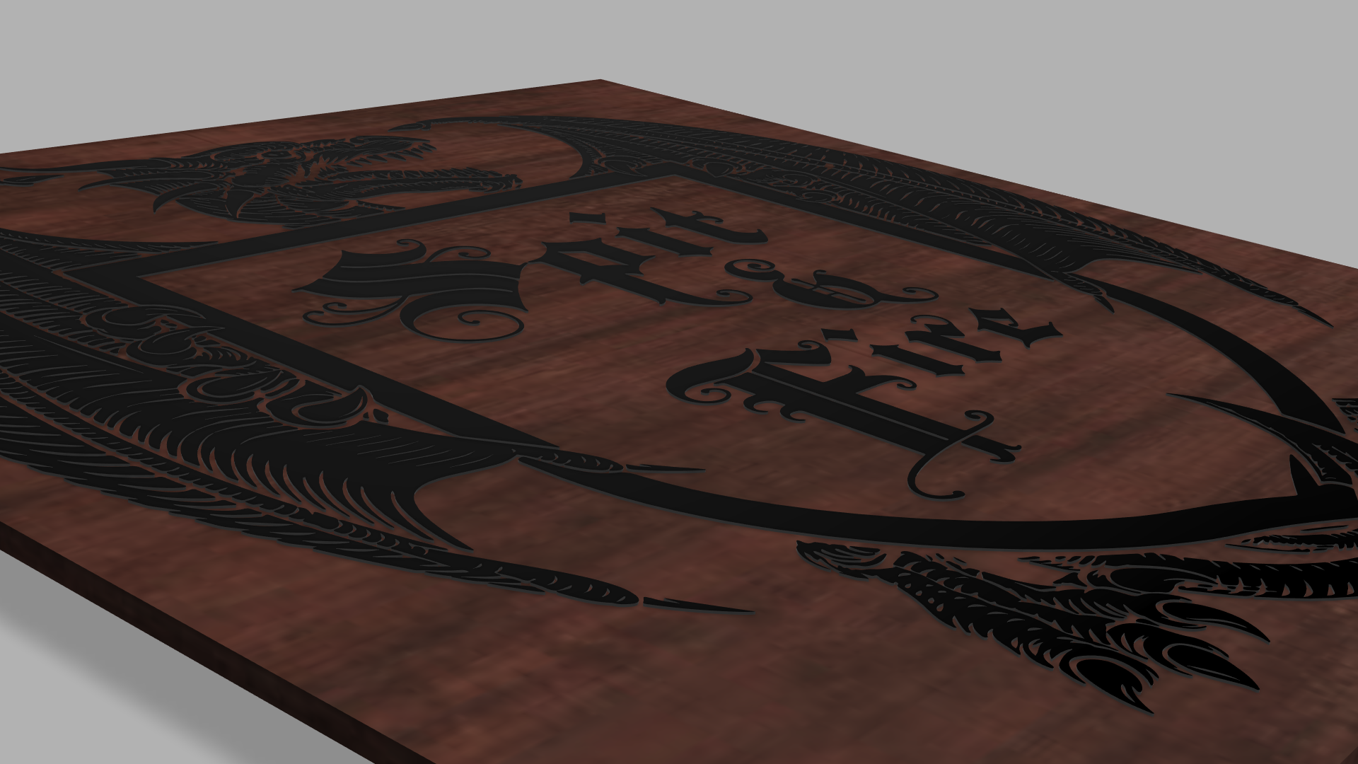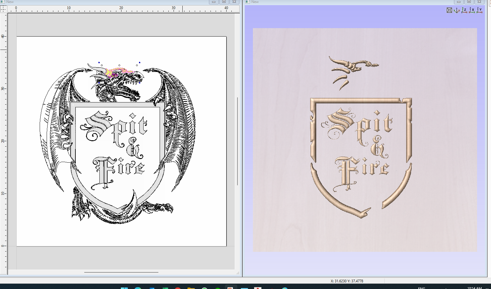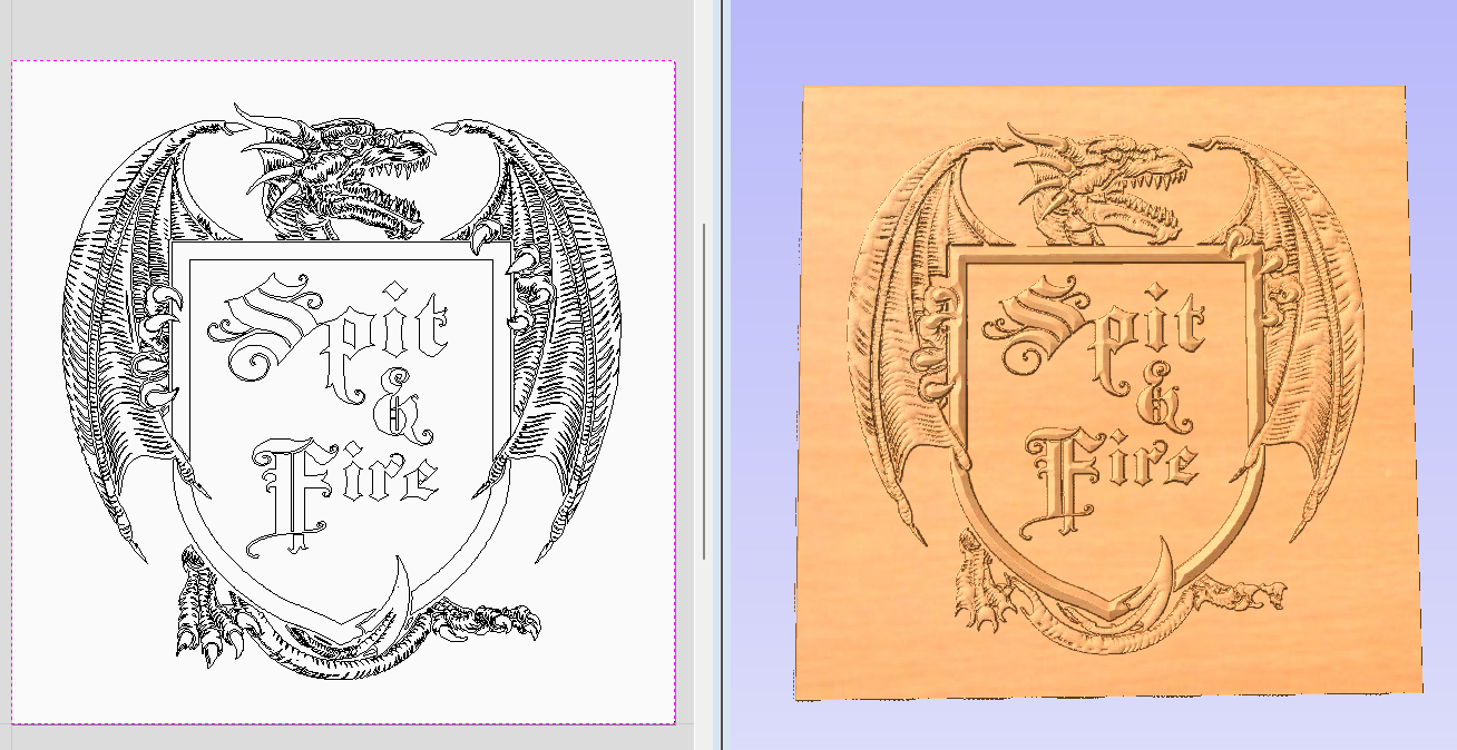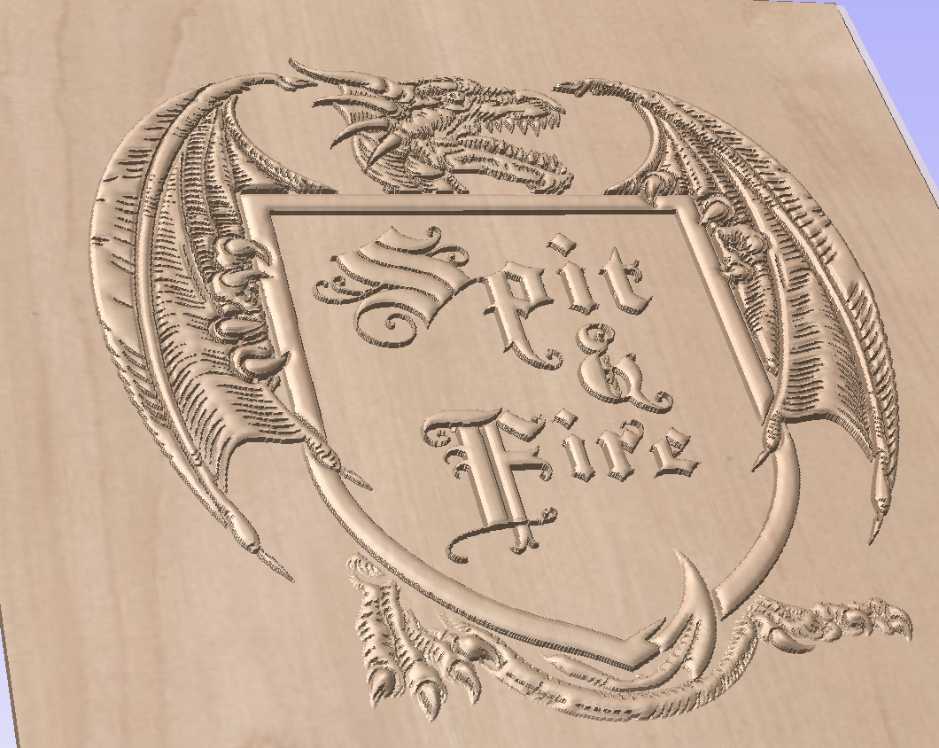 Hello.I am having such a hard time getting this file changed into an engraved sign. I don't want anything fancy, just the dragon and the frame lines carved into the wood and the letters proud with the space around them (the rest of the inside of the shield) pocketed out.