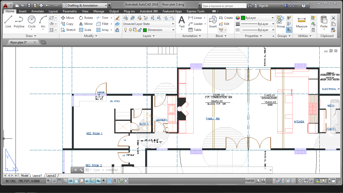 请take a look at the first floor plan and show how you would clean the drawings up.